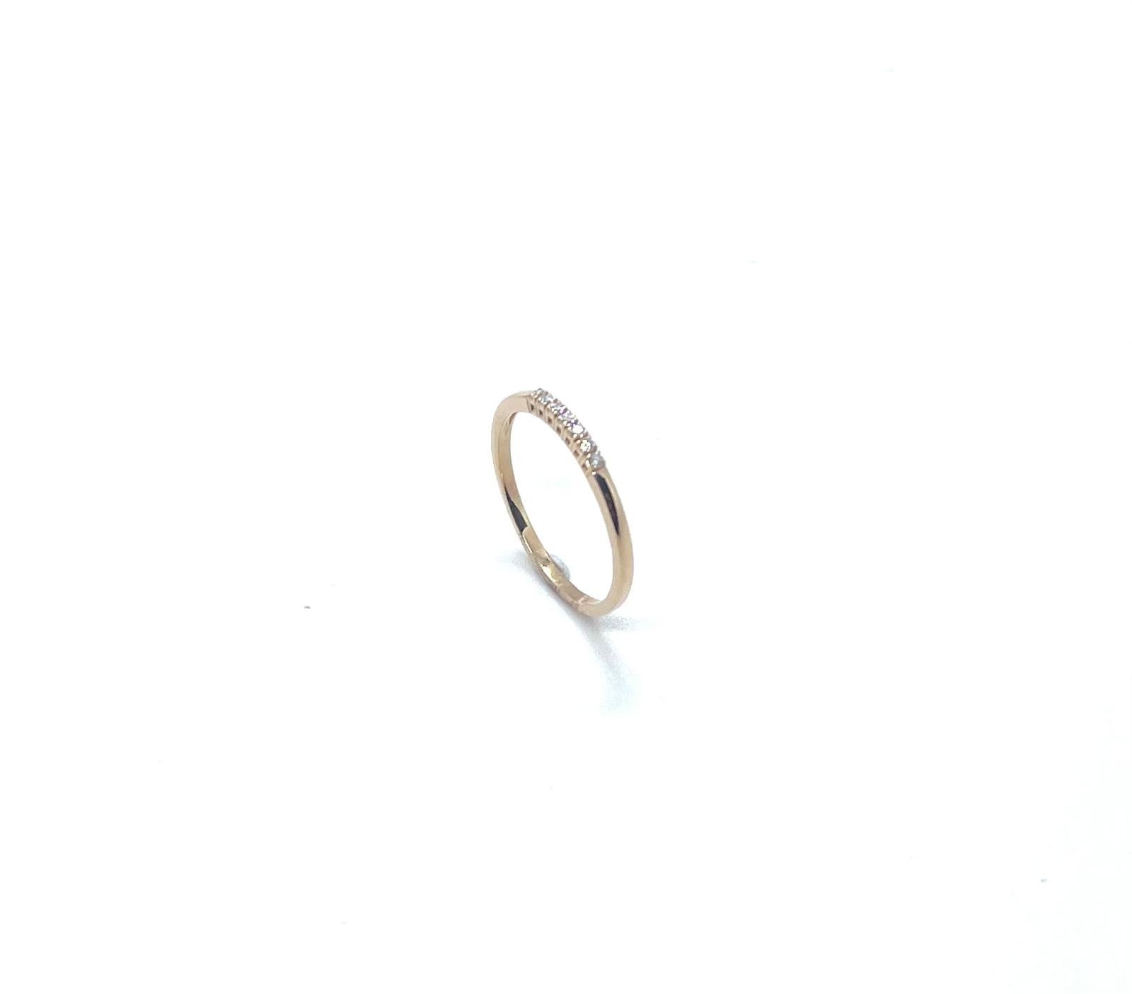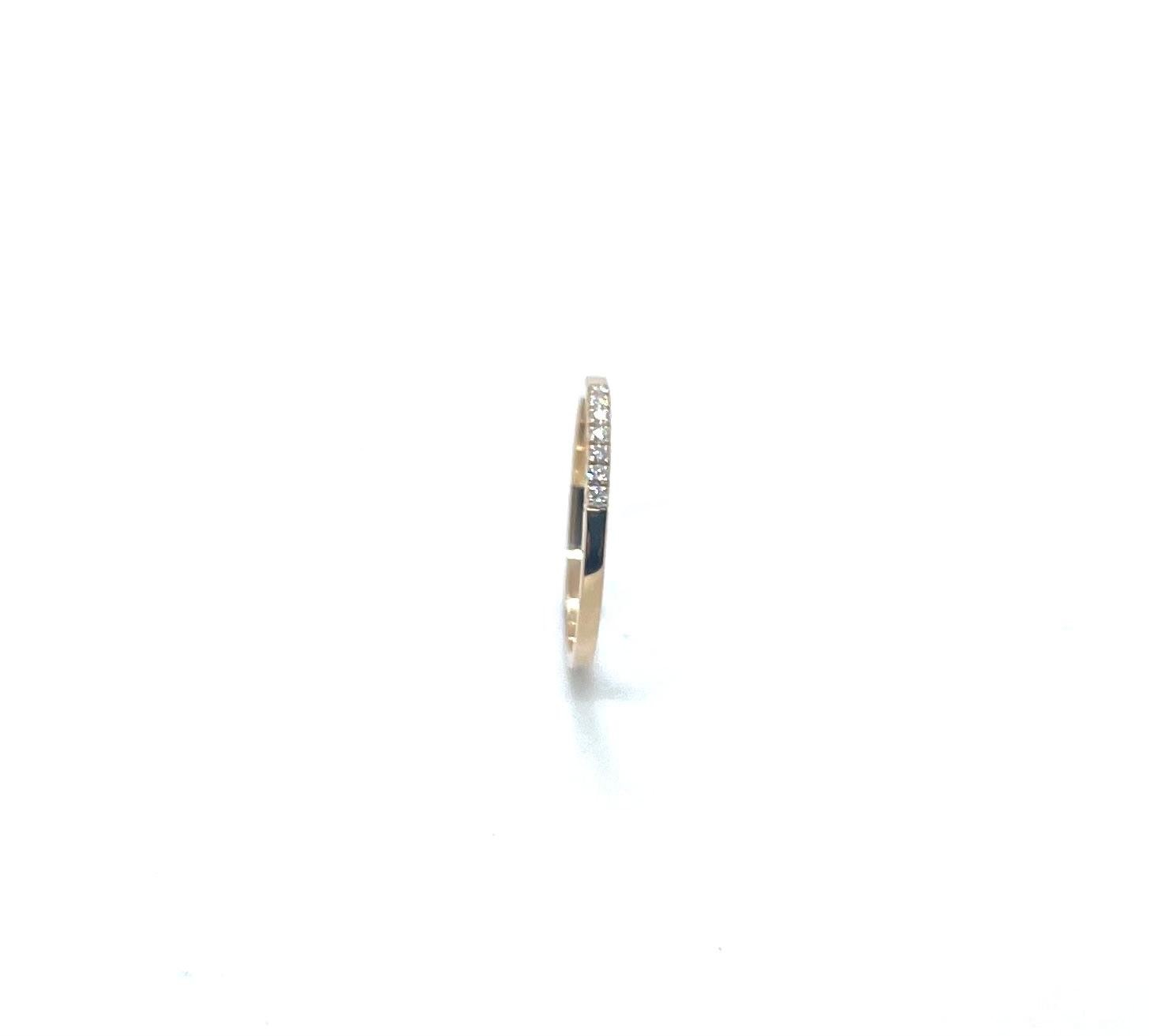 El centre de l’anell està delicadament encastat amb una línia de diamants naturals talla brillant (0,08 ct), que aporten una lluentor subtil i elegant. La seva forma minimalista el converteix en una peça versàtil, perfecta per portar sola o combinada amb altres anells.