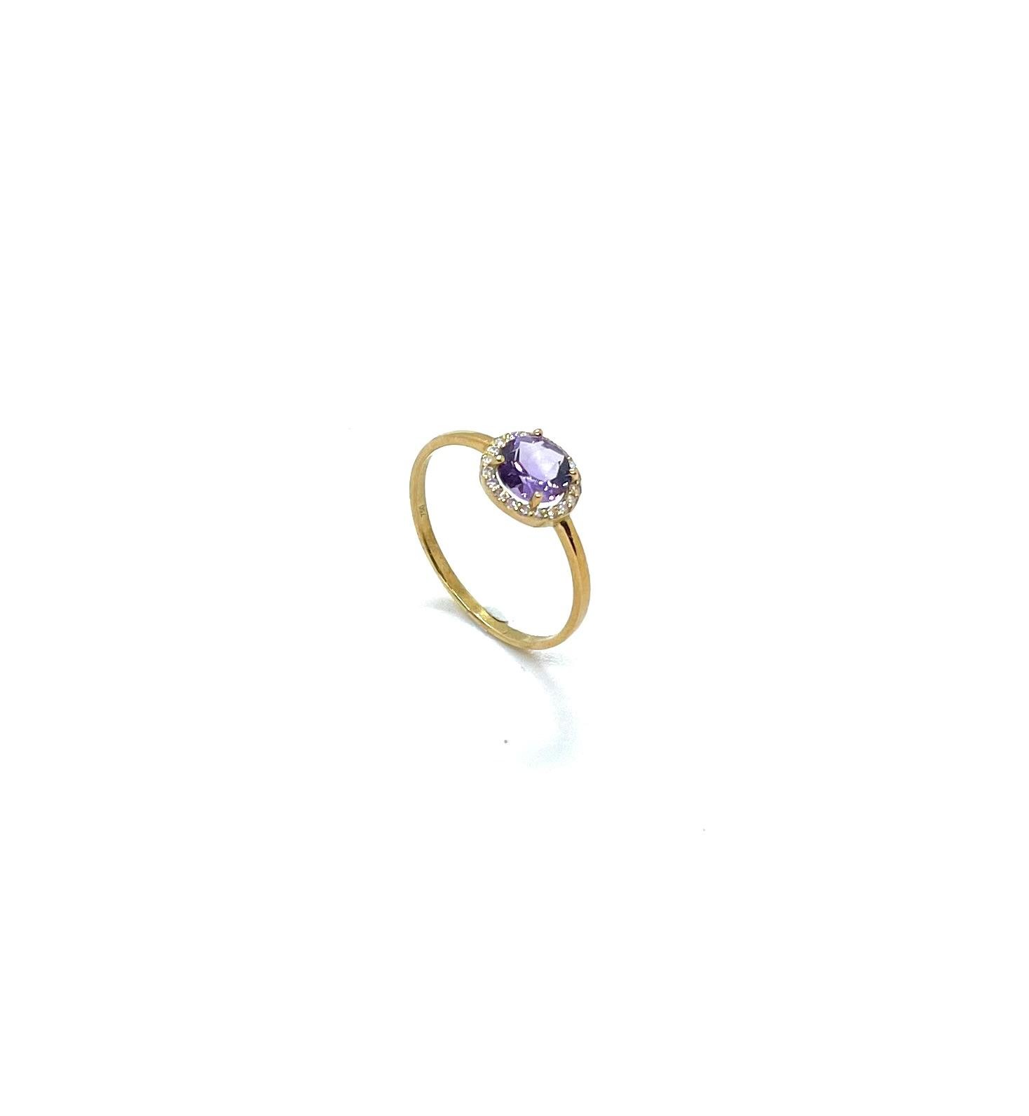 💍 Anell d’or groc amb ametista natural i diamants talla brillant