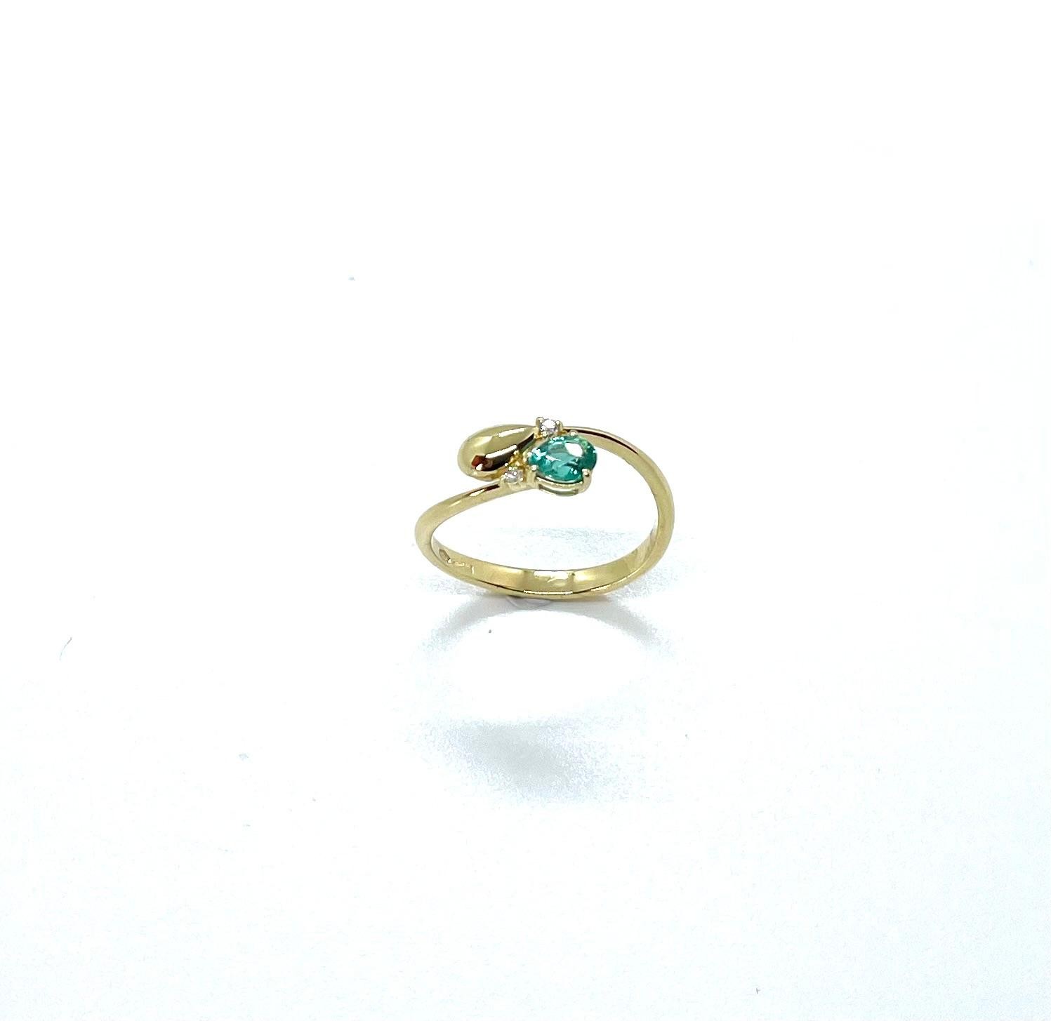 Anell d’Or Groc 18 kt amb Maragda i Diamants