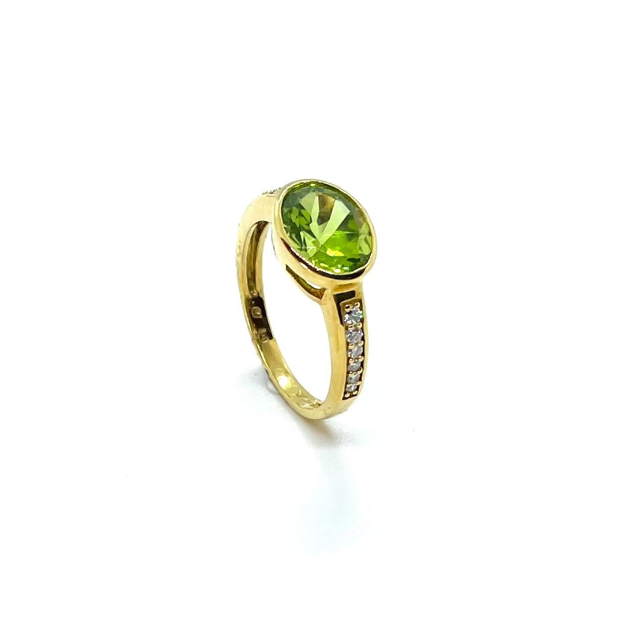 Anell d’Or Groc 18 kt amb Olivina i Diamants Naturals