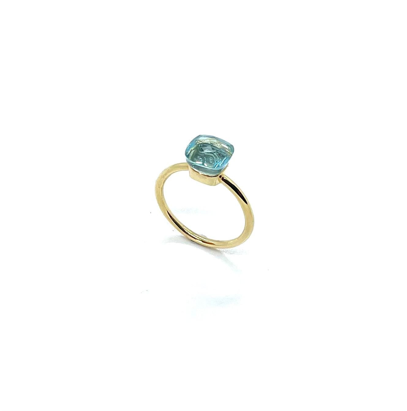 Anell d’Or Groc 18 kt amb Topazi Blau Sintètic