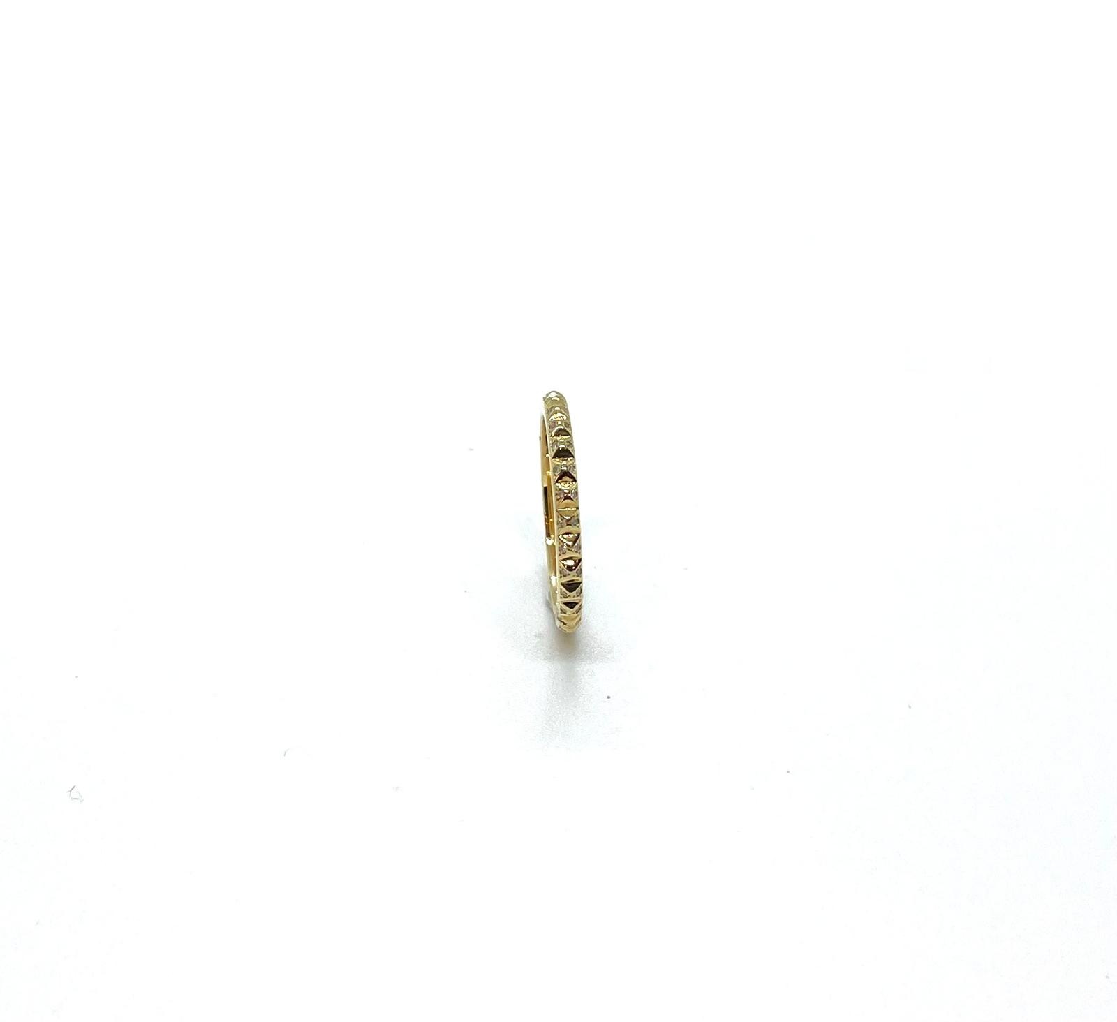 Delicat anell elaborat en or groc de 18 quirats, amb un disseny senzill i elegant que destaca per la lluminositat de la seva pedra central.