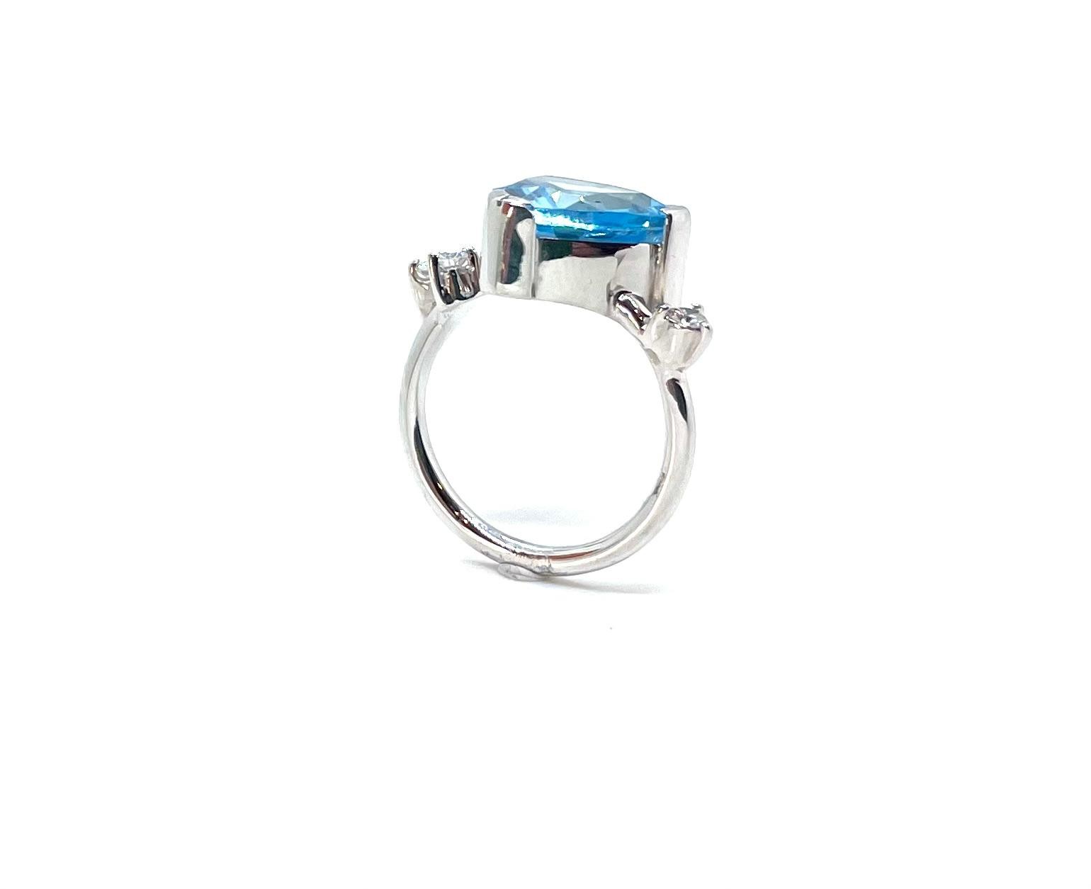 Anell d’or blanc de 18 kt amb topaç blau talla trillion i diamants naturals